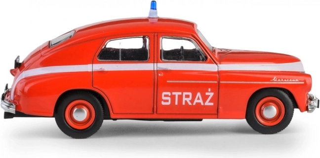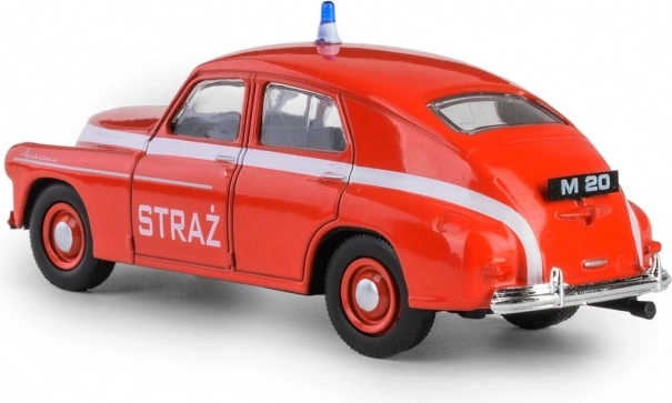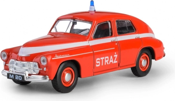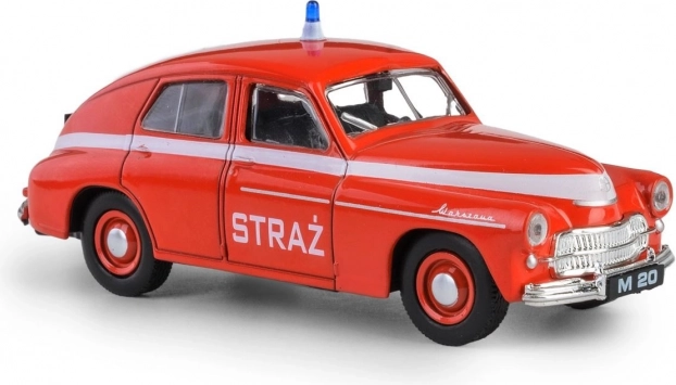Ikonična PRL Warszawa M-20 simbol je poslijeratne automobilske ere. Prvo vozilo sišlo je s proizvodne linije 6. studenoga 1951. u 14:00, a ubrzo je steklo popularnost i izvan Poljske – izvoz je započeo već 1954. Ovaj model u vatrogasnoj verziji vjerno prikazuje tadašnje linije i proporcije, pa se savršeno uklapa u kolekcije ljubitelja oldtimera i povijesnih interventnih vozila.