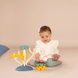 Little Smoby koraljne drvene igračke sastoje se od osam šarenih plastičnih elemenata koji podsjećaju na ukrasne osmonožne i kornjačine oblike. Djeca mogu lako povezivati pojedine dijelove i mijenjati njihov raspored na granama stabla, čime potiču svoju kreativnost.