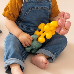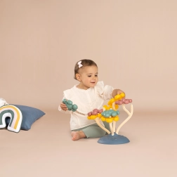 Igračka se ističe ergonomskim dizajnom sa zaobljenim oblicima i modernim bojama koje se uklapaju u dječju sobu. Pažljivo je osmišljena kako bi podržala razvoj osjetilne percepcije i fine motorike.