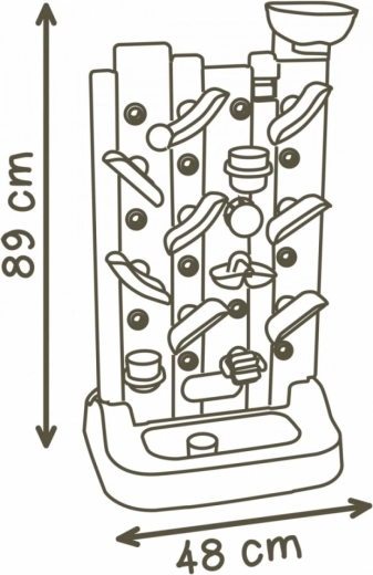 Dvostrani zid aktivnosti SMOBY donosi djeci raznolik svijet eksperimentiranja i kretanja. S jedne strane čeka sustav žlijebova za puštanje vode ili loptica, koji prirodno razvija razumijevanje uzroka i posljedice, percepciju smjera i brzine te strpljenje. Na drugoj strani djeca će igrati križić-kružić, uvježbati preciznost pri gađanju košara i isprobati gimnastičke poze na rotirajućem kolu aktivnosti.