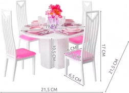 Ovaj promišljeni set namještaja pretvara svaku kućicu za lutke u ugodnu blagovaonicu. Zahvaljujući realističnim detaljima – od ružičastih podložaka preko tanjura i pribora za jelo do čaša – djeca će uživati u dugim satima maštovite igre i „blagovanja” s lutkama.