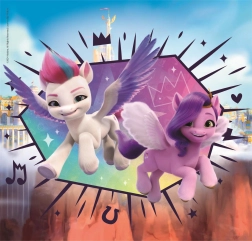 U pakiranju se nalaze tri zasebne slagalice s omiljenim motivima MY LITTLE PONY, svaka s 48 dijelova. Zahvaljujući precizno izrezanim dijelovima i izdržljivoj izradi slaganje je glatko i ugodno – idealno za zajedničke trenutke s djecom i samostalnu igru.