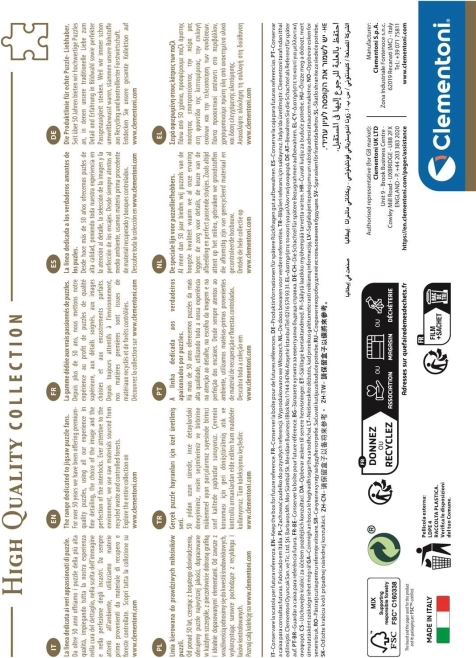 Otkrijte zabavu i fokus u jednom s Clementoni puzzlama. Motiv iz popularne serije LA CASA DE PAPEL oduševit će obožavatelje i kolekcionare. Zahvaljujući izvrsnoj oštrini i kvalitetnom tisku istaknut će se boje i detalji, dok robustna, elegantna kutija štiti sadržaj i izvrsna je kao poklon.