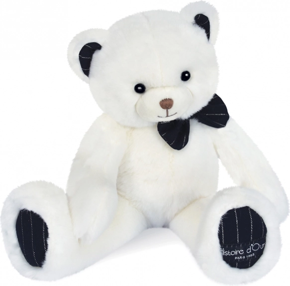 Presladak i mekani plišani medvjedić u boji slonovače s tamnoplavom prugastom leptir‑mašnom idealan je prvi prijatelj za krevetić i kao dekoracija dječje sobe. Izrađen je od premium, baršunastog pliša, udovoljava europskim CE normama i prikladan je od rođenja. U pakiranju je prekrasna poklon‑kutija, pa je izvrsna ideja za božićni poklon ili dar povodom rođenja djeteta.
