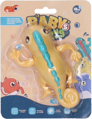 Ova atraktivna navijajuća gušterica savršen je dodatak vašoj kupaonici koji će zainteresirati djecu svake dobi. Dostupna je u tri različite boje: plava, crvena i žuta, pa možete odabrati onu koja najbolje odgovara vašim preferencijama. Dovoljno ju je naviti i gledati kako pliva uokolo u kadi. Djeca će se s oduševljenjem uključiti u igru i razvijati svoju maštu.