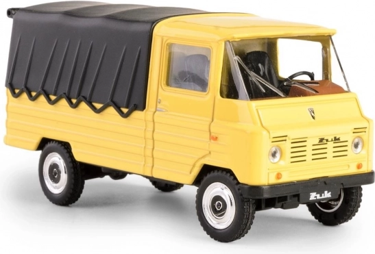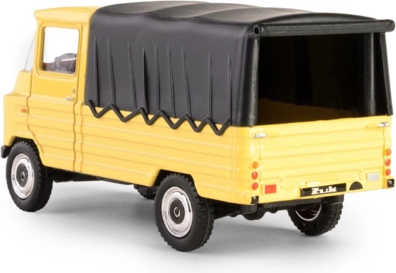 Otkrijte legendu džepne veličine: model FSC Żuk, temeljen na kultnom poljskom gospodarskom vozilu proizvedenom u Lublinu. Ovaj kolekcionarski primjerak u upečatljivoj žutoj boji s crnom ceradom vjerno dočarava izgled i proporcije originala, uključujući detalje kabine, kotača i maske.