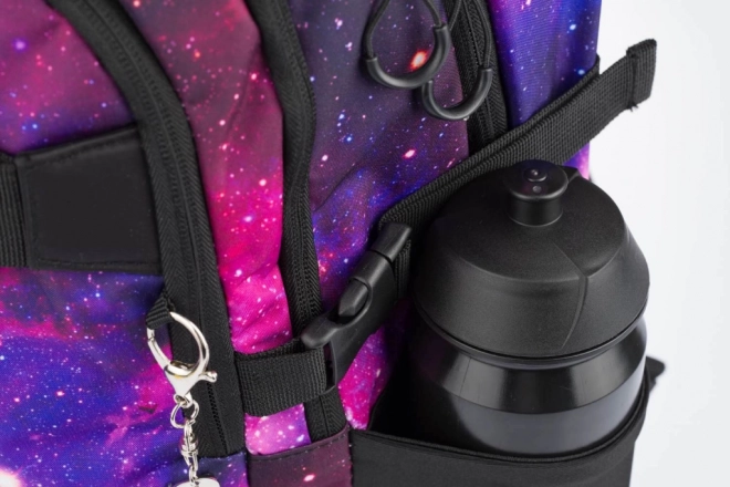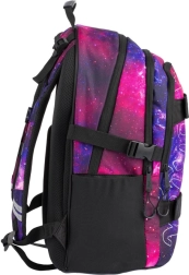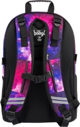 Otkrijte savršenu kombinaciju funkcionalnosti i stila. Školski set BAAGL Skate Galaxy donosi izdržljiv ruksak s trokomornim rasporedom, organizatorom i podstavljenim džepom za 15" prijenosno računalo ili tablet. Ergonomski oblikovana leđa, potpuno podesive naramenice, prsni i bočni kompresijski remeni osiguravaju zdravo i udobno nošenje tijekom cijelog dana. Prednji remeni služe za pričvršćivanje skateboarda, bočni elastični džepovi primaju bocu za piće, a reflektirajući elementi povećavaju vidljivost.