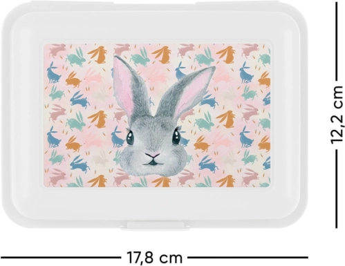 Minimalistički dizajn u bijeloj boji upotpunjuje šarmantni motiv Bunny, koji će razveseliti djecu i ljubitelje razigranih detalja. Kutija je lagana, lako se prenosi i stane u školski ruksak ili torbicu.