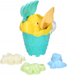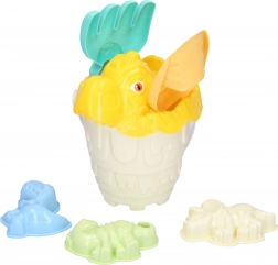 Zabavni set za pijesak Dino za male graditelje sadrži sve potrebno za igru na plaži i na igralištu. U njemu ćete naći kanticu, poklopac sa sitom, 3 kalupa dinosaura, grabulje i lopaticu. Idealan za razvoj kreativnosti, fine motorike i zajedničku igru.
