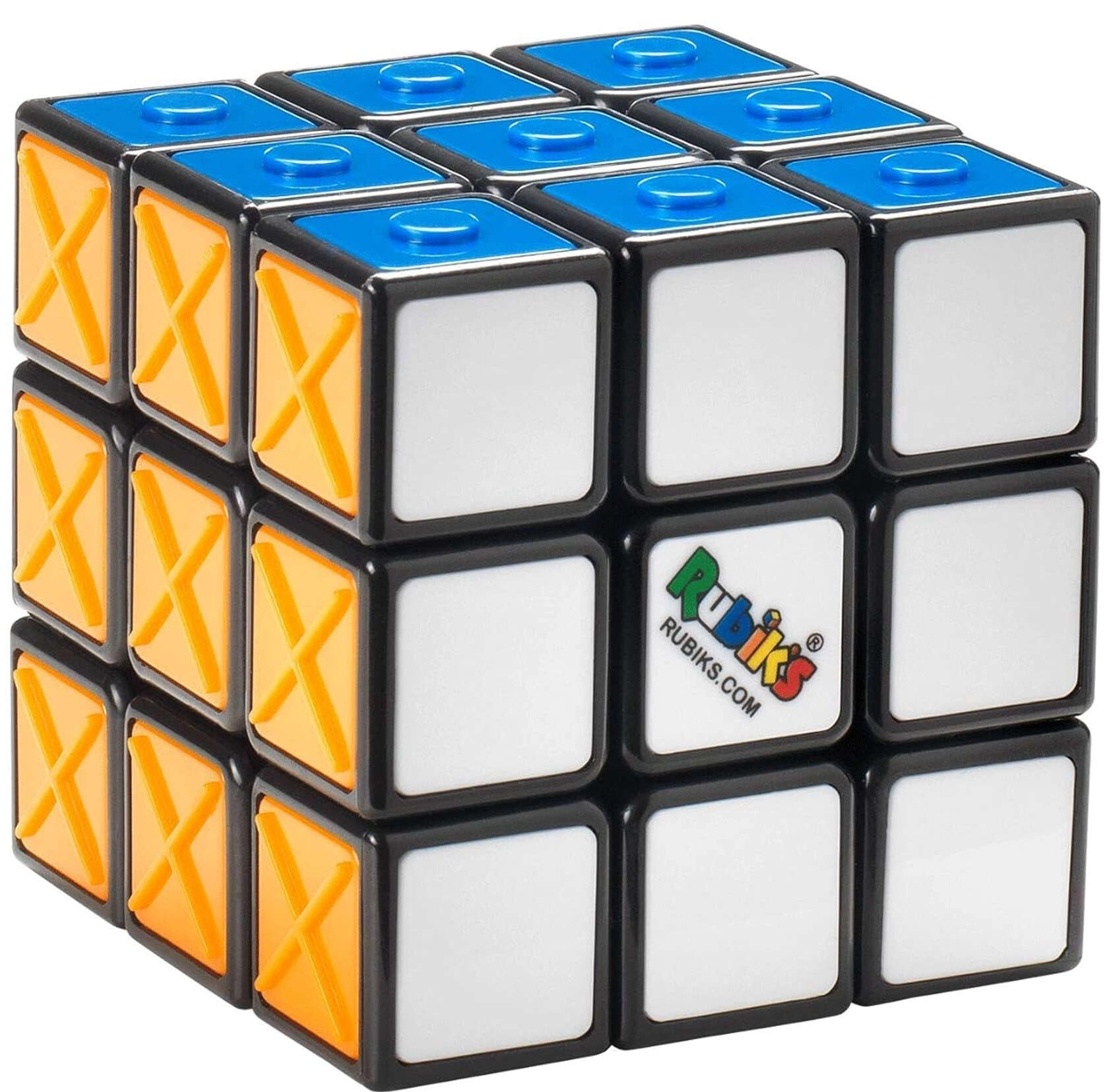 Rubikova kocka 3x3 Rubik’s Sensory Cube donosi legendarni mozgalicu u pristupačnom obliku s reljefnim uzorcima na svakoj boji. Teksture – točkice (žuta), kvadrati (crvena), puni krugovi (plava), prsteni (zelena), križići (narančasta) i glatka (bijela) – omogućuju razlikovanje strana i dodirom.
