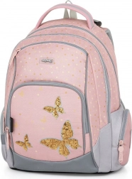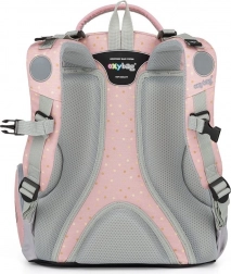 Školski ruksak OXY GO u nježnom dizajnu s motivom leptira oduševit će ne samo izgledom, već i promišljenom ergonomijom. Zahvaljujući prozračnim leđima i podesivim naramenicama pruža udobnost pri cjelodnevnom nošenju i podupire pravilno držanje tijela. Niska masa od 0,99 kg i reflektirajući elementi povećavaju sigurnost na putu do škole.