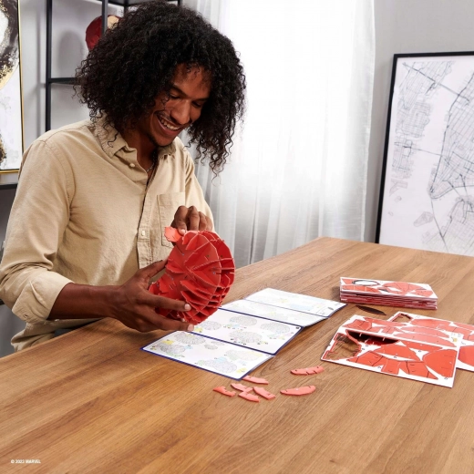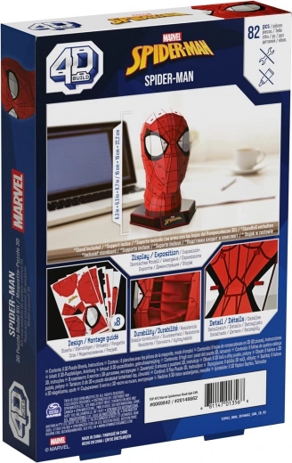 Sastavite vlastitu kultnu glavu SPIDER-MAN s detaljnim 4D Build modelom bez potrebe za ljepilom ili alatom. Set sadrži 82 izbijajuća dijela na 8 ploča, čvrsto postolje s logotipom MARVEL SPIDER-MAN i jasan priručnik. Gotov model mjeri 16 × 16 × 22,2 cm i idealan je kao dekoracija za sobu, igraonicu ili vašu kolekciju superjunaka.
