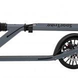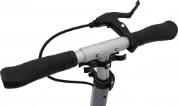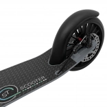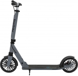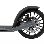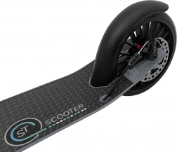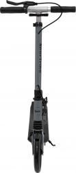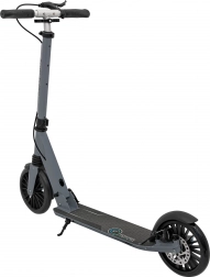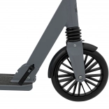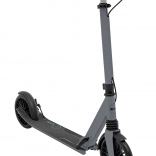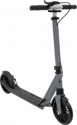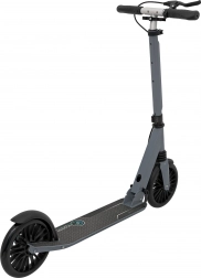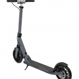 Za sigurnost je romobil opremljen dvostrukim kočionim sustavom – ručnom disk kočnicom straga i nožnom kočnicom na blatobranu. Trostupanjska visinska regulacija upravljača (85–99 cm) prilagođava se vozačima različite visine, a ergonomske gumene ručke pružaju udobnost i na dužim relacijama.