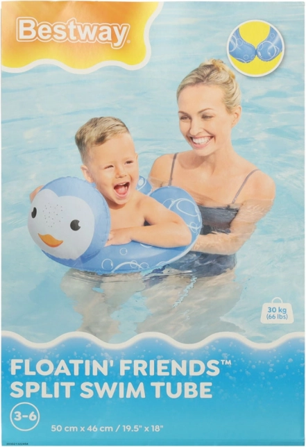 Uživajte u vodenim radostima s dječjim napuhujućim prstenom BESTWAY u obliku pingvina. Razigrani dizajn, ugodna plava boja i uzorak mjehurića potaknut će djecu na sigurno upoznavanje s vodom i učenje plivanja. Prsten je izrađen od izdržljivog PVC-a i namijenjen je djeci u dobi 3–6 godina (maks. 30 kg).