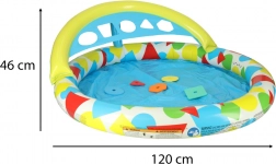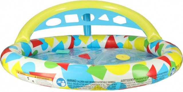 Napuhavajući bazen BESTWAY razveselit će najmlađu djecu veselim višebojnim dizajnom i pametnim elementima za osjetilni razvoj. Integrirani sorter oblika i priložene pjenaste kockice potiču finu motoriku te prepoznavanje boja i oblika – sve to uz sigurno brčkanje u vodi.
