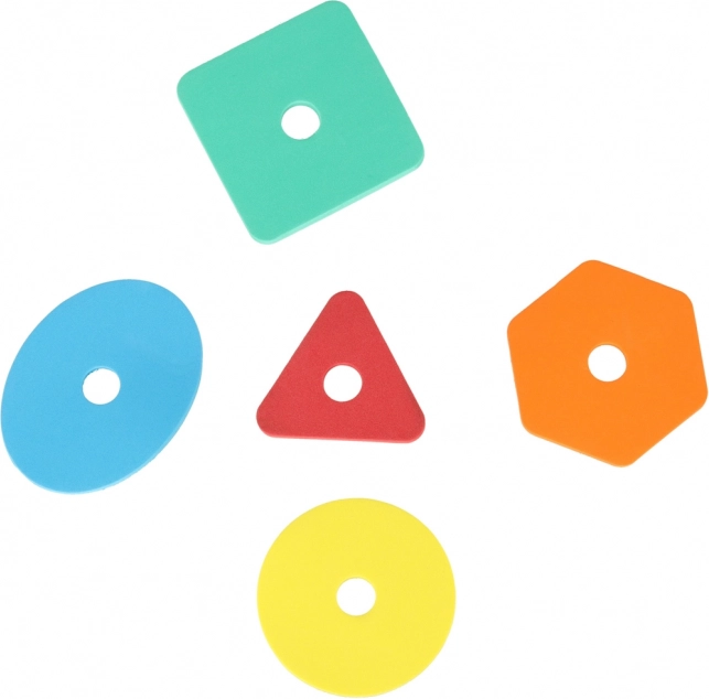 U kompletu su šareni oblici koje djeca ubacuju u odgovarajuće otvore – razvijaju finu motoriku, koordinaciju oko–ruka i prepoznavanje boja.