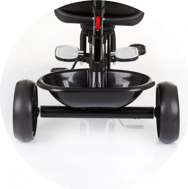 Sigurnost je na prvome mjestu: trokolić ima odvojivu zaštitnu prečku, sigurnosne pojaseve i stabilnu konstrukciju. Roditelji će cijeniti podesivu ručku, sklopive oslonce za noge te praktične košare za sitnice sprijeda i straga. Kada je dijete spremno, prečku i ručku s krovićem možete ukloniti, a mali vozač može pedalirati samostalno.