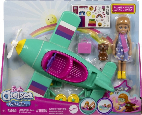 Uz set Barbie Chelsea Can Be djeca mogu sanjati veliko. Mala pilotkinja CHELSEA sjeda u dvosjedni avion u živim bojama, dok njezino vjerno štene kreće na palubu. Rotirajući cvjetni propeler, slobodno se okrećuća kola i mogućnost pričvršćivanja zastavice Chelsea pretvaraju svaku vožnju u let pun mašte.