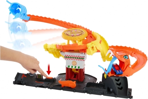 Suočite se s zastrašujućom kobrom u pizzeriji i spasite grad HOT WHEELS kao junaci iz serije „Let’s Race”! Ovaj akcijski set nudi tri nasumične rute, efektne zamke i dinamične kaskaderske elemente. Napete prepreke s kobrom, 3 moguća smjera vožnje i povezivanje s drugim setovima Hot Wheels City jamče beskrajnu zabavu. U kompletu je 1 metalni autić.