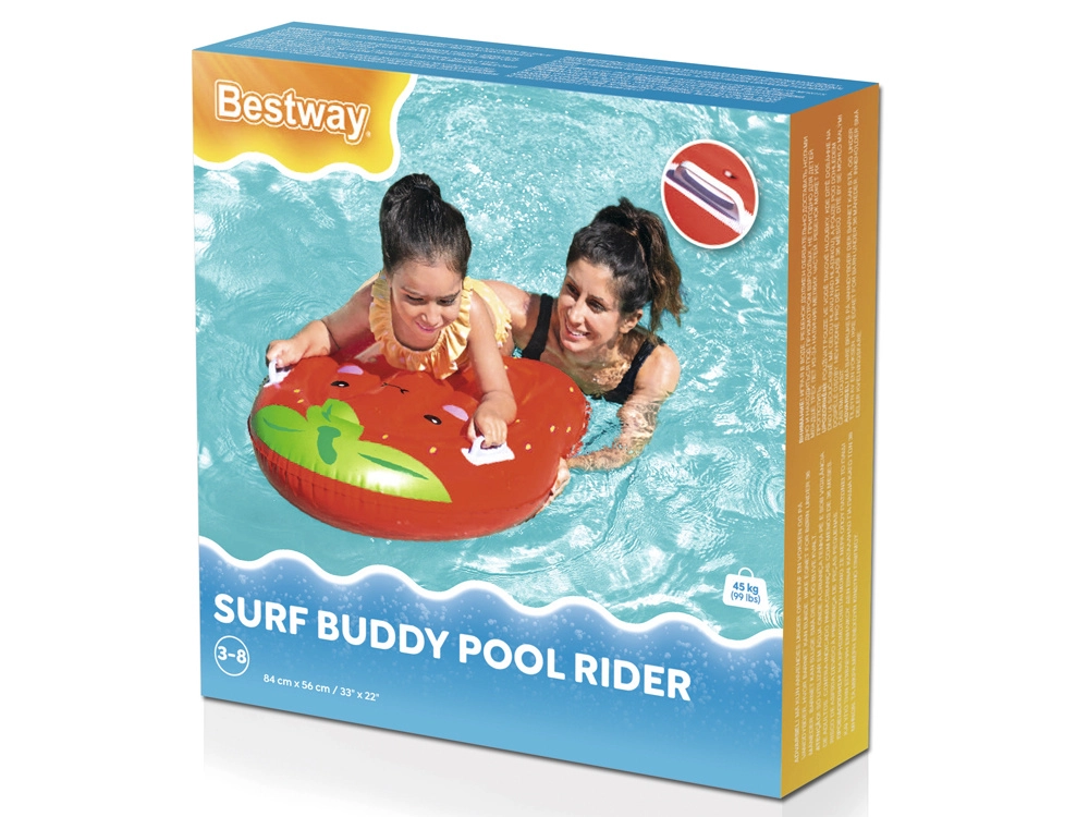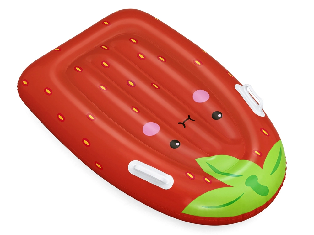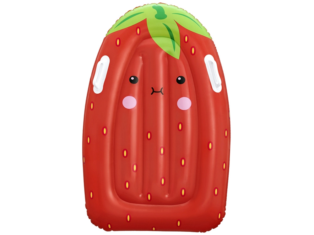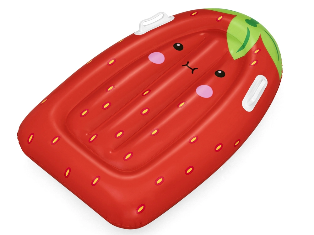 Lagana i stabilna napuhujuća daska BESTWAY za djecu od 3 do 8 godina pomaže pri prvim koracima u vodi. Zahvaljujući dvama bočnim držačima pruža sigurnost, ravnotežu i stabilnost pri vježbanju zaveslaja i udaraca nogama. Veseli motiv jagode i ergonomski oblik podupiru ispravno držanje i udobnu upotrebu u bazenu i na moru.