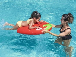 Lagana i stabilna napuhujuća daska BESTWAY za djecu od 3 do 8 godina pomaže pri prvim koracima u vodi. Zahvaljujući dvama bočnim držačima pruža sigurnost, ravnotežu i stabilnost pri vježbanju zaveslaja i udaraca nogama. Veseli motiv jagode i ergonomski oblik podupiru ispravno držanje i udobnu upotrebu u bazenu i na moru.