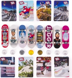 Svaki fingerboard u ovoj kolekciji ima autentični dizajn od svjetski poznatih skate firmi. Uključeno je također 8 sakupljačkih karti koje prikazuju odabrane skateboardiste u akrobatskim trikovima. Postavite svoje fingerboarde na stalke sa zlatnim, srebrnim i brončanim držačima i izložite svoje dragocjenosti s ponosom.