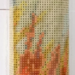 - Platno s unaprijed otisnutom slikom, aplikacijsko pero, posudica, vosak i set šarenih kamenčića