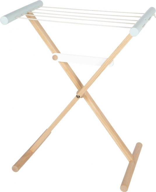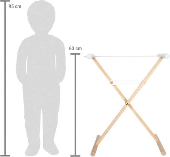 Stabilna konstrukcija sa sigurnosnom prečkom osigurava da sušilica ostane čvrsta i pri intenzivnoj igri. Nježna boja prirodnog drva daje čaroban izgled koji se uklapa u svaki interijer. Nakon završetka igre sušilica se lako sklapa, što štedi prostor.