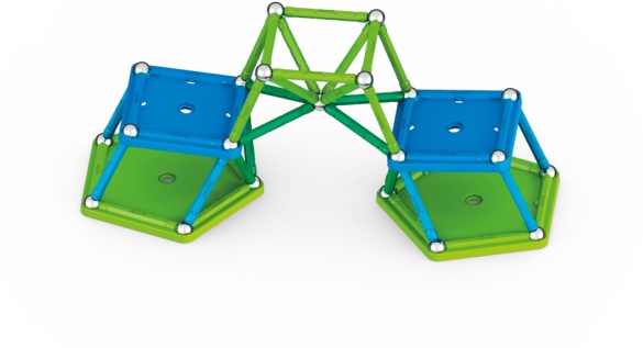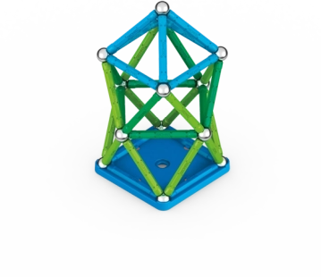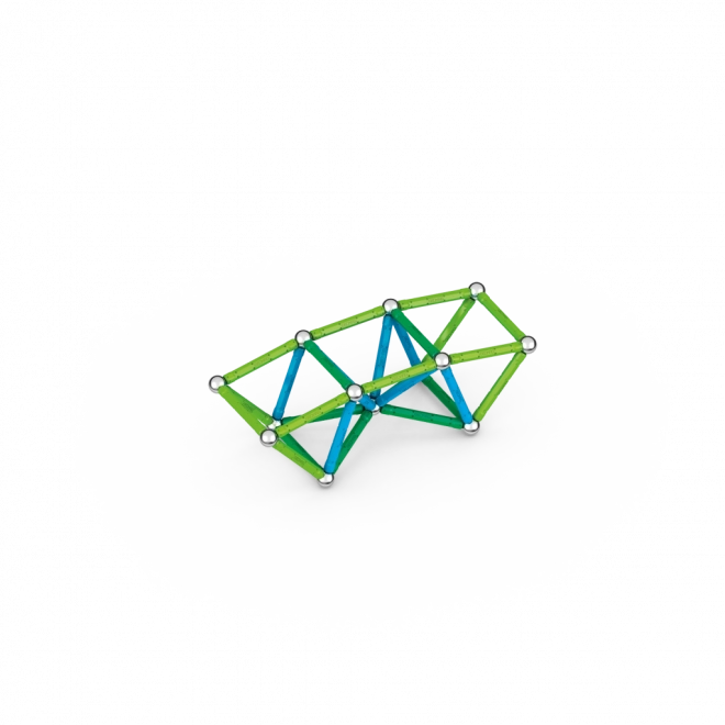 Set nudi magnetske štapiće i kuglice koji osiguravaju izdržljivost i stabilnost svake konstrukcije. Uključuje dva posebna kvadratna i dva peterokutna postolja.