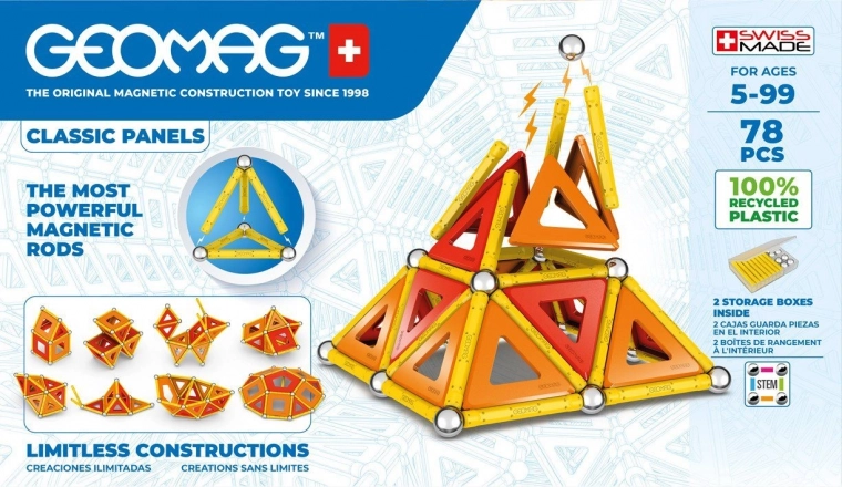 Geomag Classic Paneli 78 Dijelova - magnetski set za kreativnost i učenje, izrađen u skladu s najstrožim standardima.
