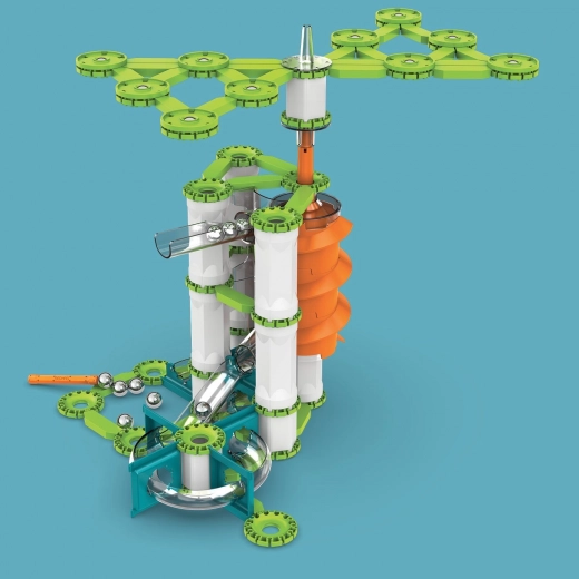Sastavite fascinantne gravitacijske staze i promatrajte kako metalne kuglice pokreću cijeli mehanizam. Ručno okretanje propelera aktivira vertikalni motor i pokreće konstrukciju – idealno za zabavno upoznavanje fizičkih zakona i principa magnetizma.