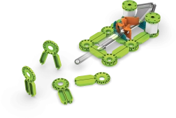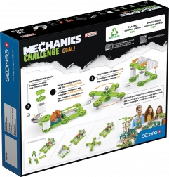 Set GEOMAG Mechanics Challenge spaja magnetske štapiće, metalne kuglice i mehaničke elemente koji proširuju mogućnosti svake konstrukcije. Zahvaljujući privlačenju i odbijanju magneta lako ćete stvoriti pokretne mehanizme i lančane reakcije. Sastavite magnetski top, nanišanite i ispalite kuglicu u gol – odličan izazov za pojedince i parove.