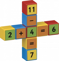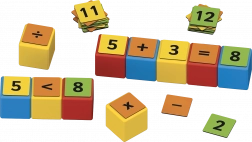 Obostrani isječci s brojevima i znakovima omogućuju slaganje jednostavnih i složenijih zadataka. Djeca prirodno vježbaju zbrajanje, oduzimanje i osnove množenja.