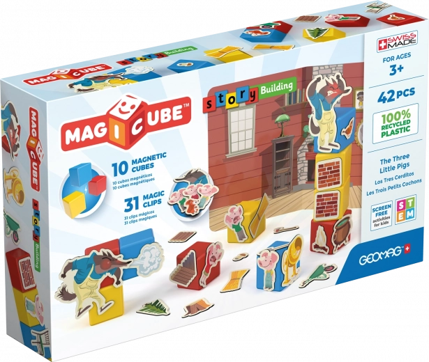 Otkrijte pametnu građevinsku igračku Geomag Magicube inspiriranu bajkom Tri mala praščića. Magnetske kocke se privlače sa svih strana, pa djeca mogu lako graditi i stvarati vlastite priče uz pomoć 31 tematskog isječka. Dio seta je i tekst na češkom i slovačkom. Kvalitetna švicarska izrada, sigurni materijali i dugi vijek trajanja.