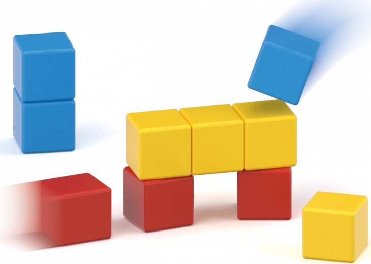Svaka se kocka zahvaljujući unutarnjoj konstrukciji pričvrsti s bilo koje strane. Djeca tako brzo slažu stabilne oblike bez frustracije i s voljom za stvaranje.