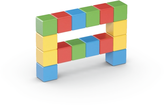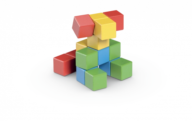 - 16 šarenih kocaka – crvena, zelena, plava, žuta za razigrane kombinacije.