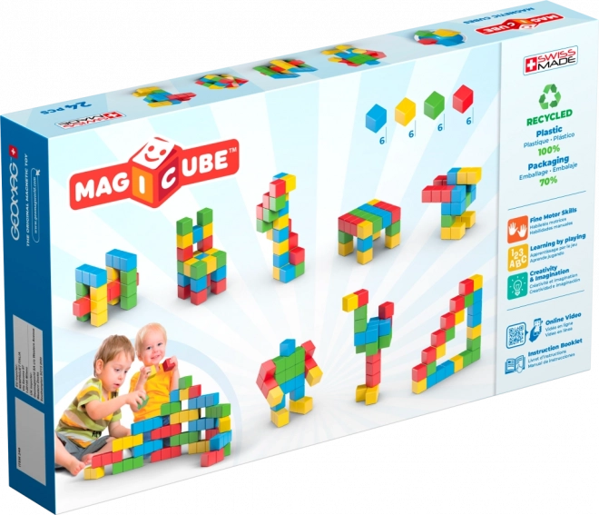 Otkrijte kreativni svijet s magnetskim setom Geomag Magicube Creative. Zahvaljujući posebnoj konstrukciji kocke se privlače sa svih šest strana i omogućuju 3D građenje i slobodno spajanje u prostoru. Set sadrži 24 šarene kocke i pogodan je već od 1. godine – idealno za razvoj mašte, fine motorike i koordinacije.