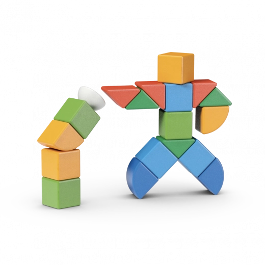 Veliki, šareni dijelovi sa zaobljenim rubovima dizajnirani su za male ruke. Potiču finu motoriku, koordinaciju oko–ruka i razvoj mašte.