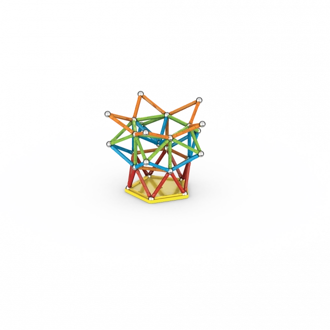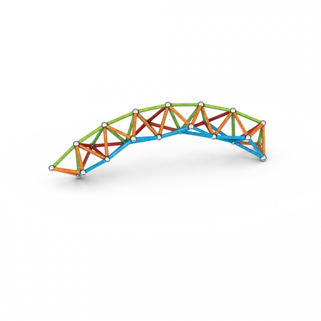 142 dijela, uključujući magnetske šipke, čelične kuglice i podnoške, omogućuju vam stvaranje mostova, tornjeva i složenih 3D oblika te potiču maštu na svaki dodir.