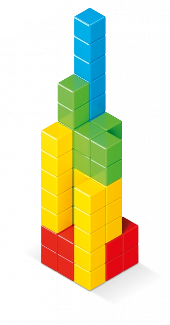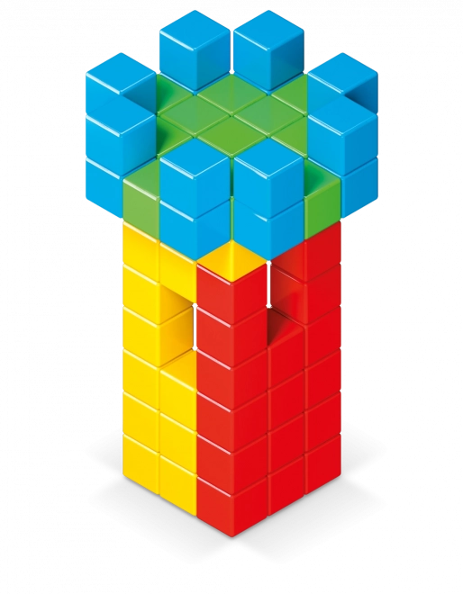 Jedinstvena konstrukcija Magicube omogućuje spajanje kockica iz svih smjerova, pa su konstrukcije stabilne, a mašti nema granica. Idealno za prve konstrukcije i složenije modele.