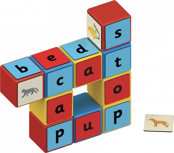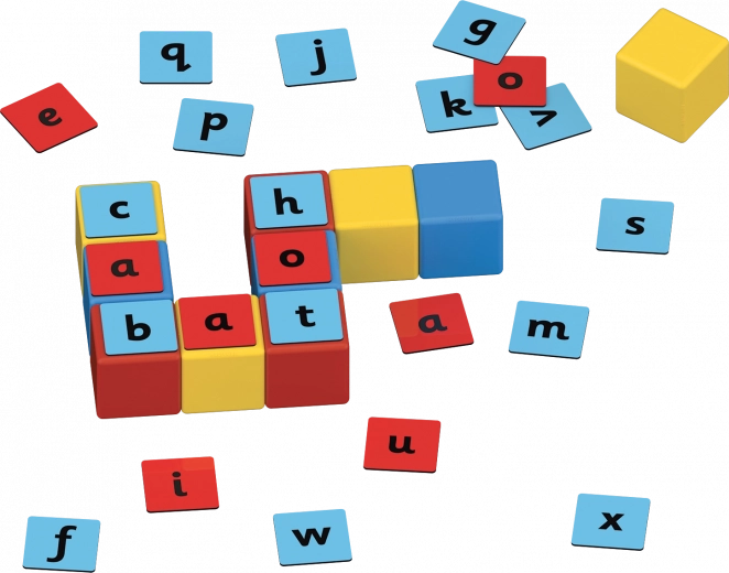 Set sadrži 10 magnetskih kocaka od 100% reciklirane plastike i 45 obostranih isječaka sa slovima i slikama. Isječci bojama razlikuju samoglasnike i suglasnike, što olakšava prvo čitanje i slaganje riječi. Igra razvija kreativnost, finu motoriku, logičko razmišljanje i potiče znatiželju pri otkrivanju magnetizma.