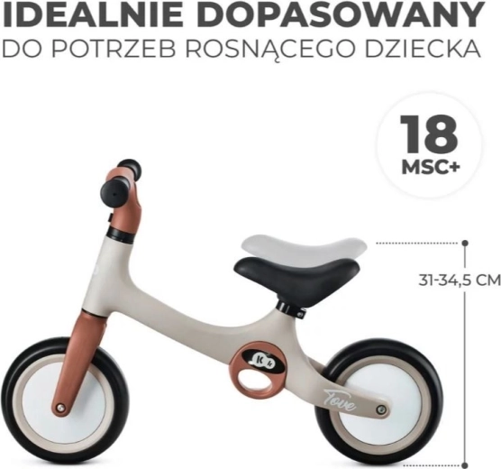 TOVE teži svega 2 kg. Bicikl je izrađen od izdržljive PP i TPR plastike – zahvaljujući tome otporan je na padove, udarce i ogrebotine.
