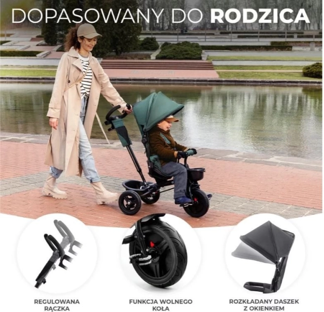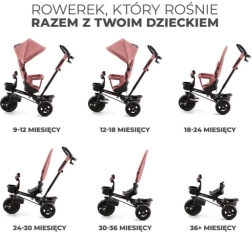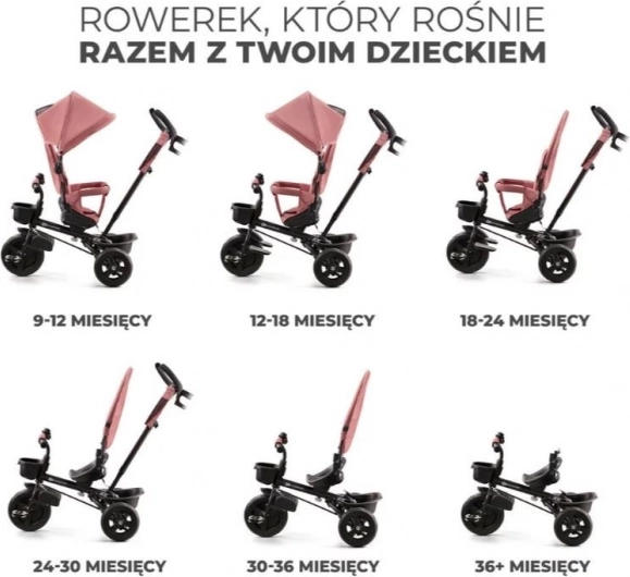 Dječja tricikla AVEO osmišljena je tako da raste zajedno s vašim djetetom. Prikladna je za djecu već od 9 mjeseci i nudi 6 različitih konfiguracija koje lako prilagodite sposobnostima vašeg djeteta. Tricikl ima rotirajuće sjedalo, praktičan krov, zaštitnu prečku i podesive pojaseve, što osigurava sigurnost i udobnost na svakoj šetnji. S AVEO-m ćete godinama imati vjernog suputnika na izletima.