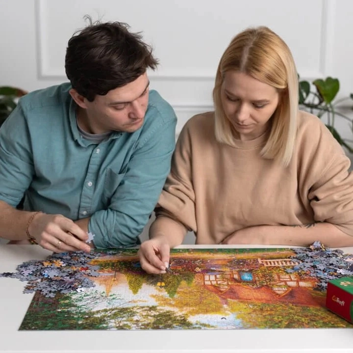 Uživajte u opuštanju uz slaganje s puzzle TREFL Premium Plus Tea Time s motivom seoskog imanja od 1000 dijelova. Serija se ističe premium kvalitetom, preciznim izrezom i jedinstvenim oblicima dijelova koji savršeno pristaju. Zahvaljujući čvrstom kartonu složene dijelove lako je prenositi, a FSC certifikacija potvrđuje brigu za prirodu.