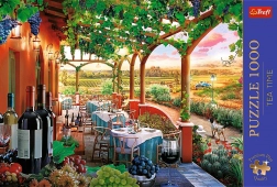 Uživajte u mirnim trenucima s premium puzzlama iz linije Tea Time, koje blistaju bojama i atmosferom mediteranskog vinograda. Zahvaljujući kvalitetnom kartonu i preciznim izrezima, dijelovi savršeno pristaju i čvrsto drže zajedno, pa možete lako prenositi i veće složene segmente.
