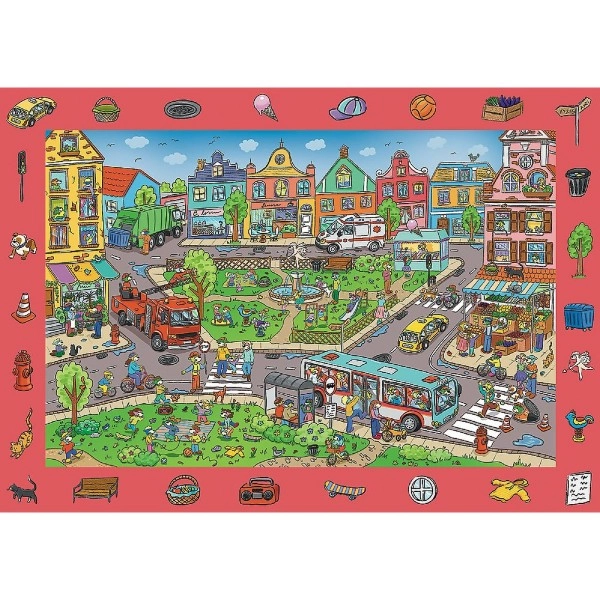 Uronite u užurbane gradske uličice s promatračkim puzzlama SPY GUY – Grad. Nakon slaganja slike čeka vas dodatni zadatak: pronaći sve predmete prikazane na okviru. Svaki dio krije malu priču i potiče dječju maštu.