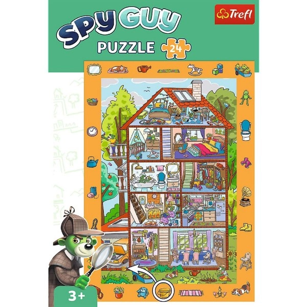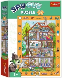 Slagalica s motivom „U kući” donosi jedinstvenu kombinaciju slaganja i igre traženja. Djeca najprije slože veliku, šarenu sliku, a zatim u njoj tragaju za skrivenim elementima koji su prikazani uz rubove okvira. Zabava se tako ne završava umećanjem posljednjeg dijela.