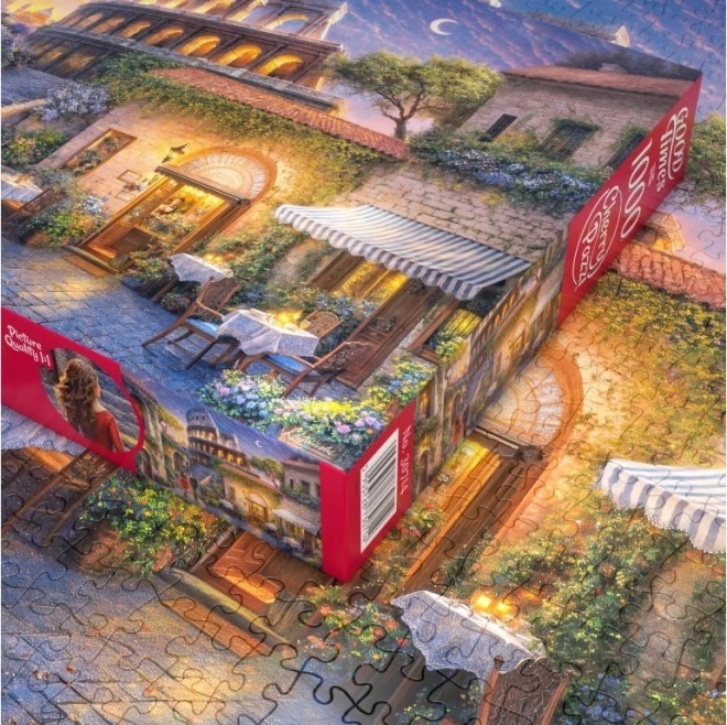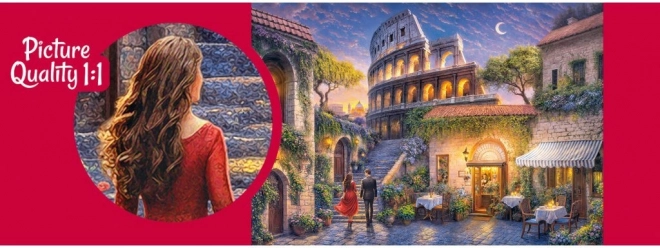 Doživite jedinstvenu atmosferu večernjeg Rima kroz ovu slagalicu od 1000 dijelova brenda CherryPazzi s romantičnom scenom zaljubljenog para koji korača prema osvijetljenom Koloseju. Ova slika idealna je za svakog ljubitelja Rima i romantike.