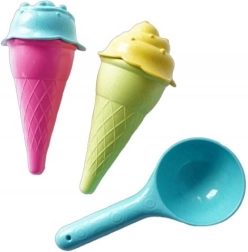 Pretvorite pješčanik u slastičarnicu! Ovaj simpatični set sadrži kornet, kuglicu i žlicu za serviranje, zahvaljujući kojima djeca lako stvaraju pješčane kuglice i cijele “kupove”. Jednostavna upotreba potiče samostalnost i maštu tijekom igre.