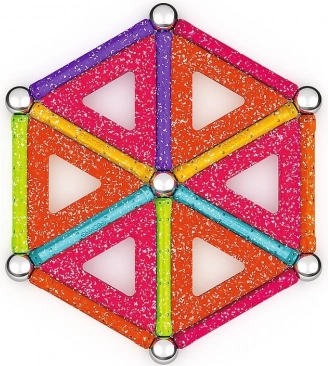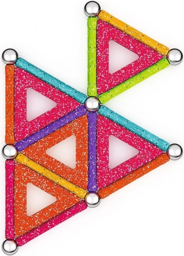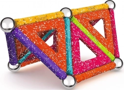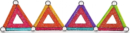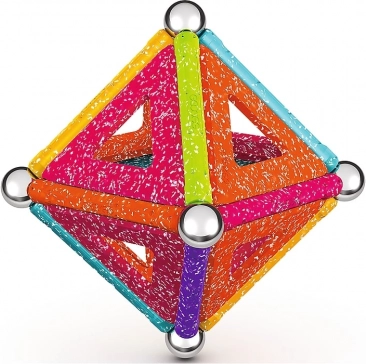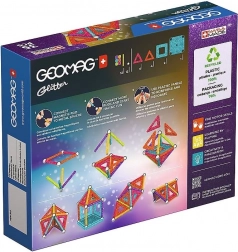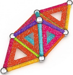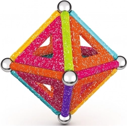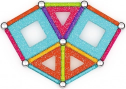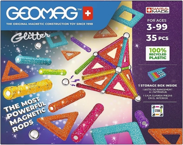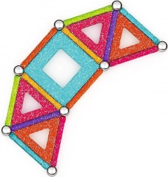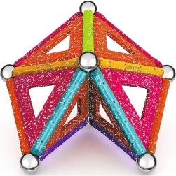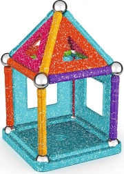 GEOMAG Glitter donosi magiju magneta u blistavom sjaju. Zahvaljujući obojenim štapićima, čeličnim kuglicama i panelima, lako ćete izgraditi kućice, zvijezde i originalne geometrijske oblike. Svi plastični dijelovi (osim kuglica) imaju sjajnu, šljokičastu završnu obradu koja svakoj konstrukciji daje poseban izgled.